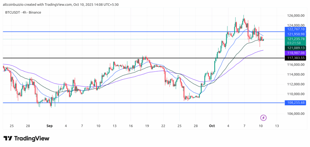 Bitcoin price sits below 50 EMA. This shows short-term bearishness. Price holds above 100 EMA. This indicates mid-term strength. The 50 EMA is at $123500. The 100 EMA is at $115000. Bitcoin must reclaim 50 EMA. This signals a positive shift. Failure means more downside. Watch for these trend changes.