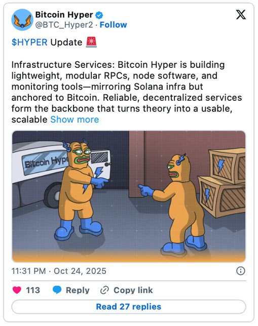 Bitcoin Hyper is the fastest Layer 2 for Bitcoin, using the Solana Virtual Machine. The project has hit $25.1 million throughout its ongoing presale. The $25M milestone comes alongside new developer updates about building the core infrastructure to power Hyper’s L2 network.