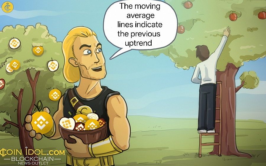 The price of BNB has twice fallen below the moving average lines. Binance coin price analysis by Coinidol.com.