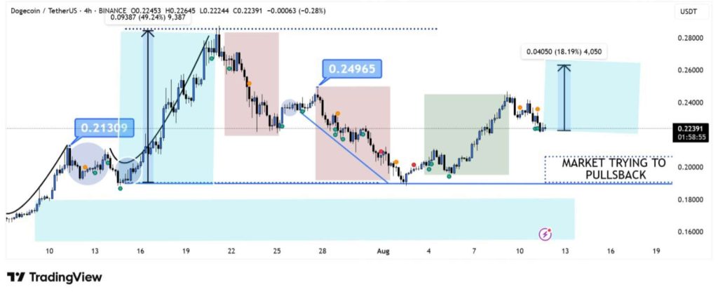 If bullish momentum continues, the chart signals a potential 18.19% surge, targeting the $0.26 zone.