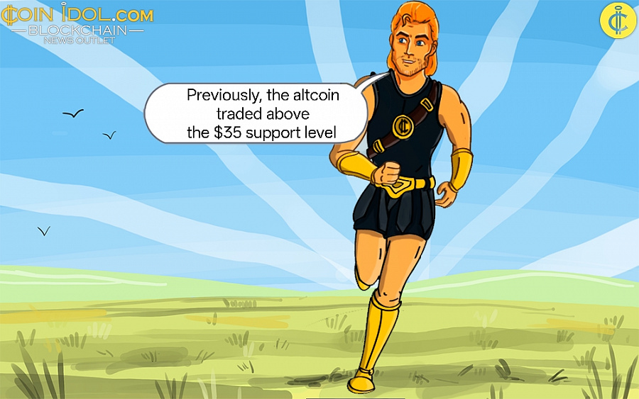 On October 26, the cryptocurrency price broke and closed above the moving average lines. Previously, the altcoin traded above the $35 support level but below the moving average lines.