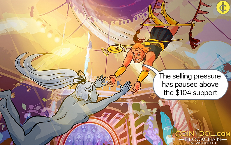 The downtrend broke the Litecoin sideways trend. The downtrend broke below the existing support and reached a low of $102. The selling pressure has paused above the $104 support, while the upward movement has stalled below the $106 high. The altcoin is now trading in a narrow range at the lowest price level. The crypto signal is poor as the altcoin is trading in a bearish trend zone.