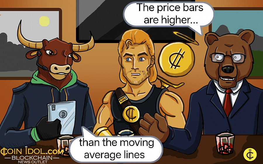 The price of the cryptocurrency is oscillating above the $2.80 support but below the $3.60 resistance level. The price bars are higher than the moving average lines, which is pushing the cryptocurrency higher. Since May, the bullish momentum has been held back by the overhead resistance at $3.60.