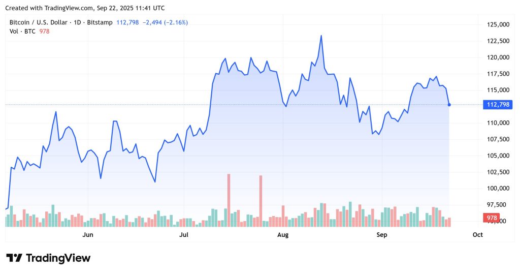Bitcoin (BTC) is trading at $112,508, down 2.7% in the last 24 hours, but still up 2% over the past week.